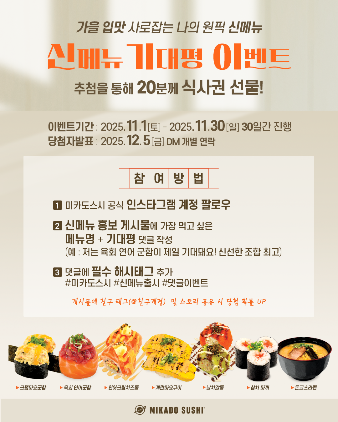 - #미카도스시이벤트 #신메뉴출시 #미카도스시00점 (방문 매장명 포함)