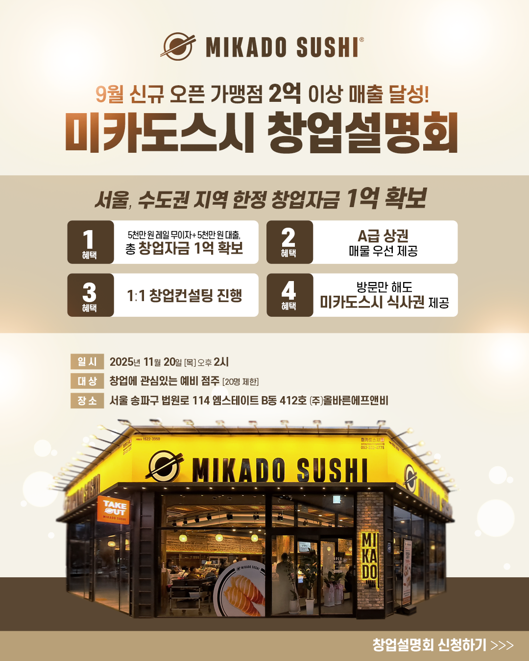 이에 따라, 더 많은 예비 창업자분들께 미카도스시만의 성공 노하우와