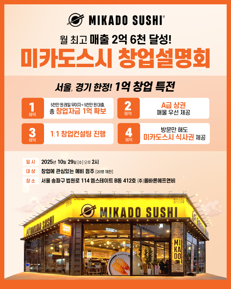 [회전초밥창업] 2025년 미카도스시 10월 창업설명회 안내